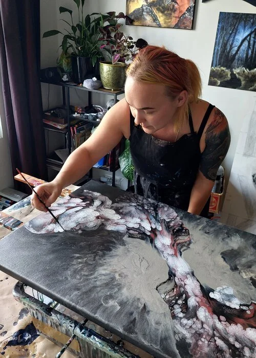 Aiheet joita käsittelen teoksissani vaihtelevat hauskoista seikkailuista fantasia maailmoissa ja kauniista abstrakteista ilmaisuista syvempään pohdintaan mielisairauksista ja tämän maailman, jossa elämme, raakuudesta. Minut tunnetaan tarinankertojana ja nämä tarinat, joita kuvitan taiteeseeni, toivottavasti puhuttelevat myös sinua. Kiitos, että olet täällä.